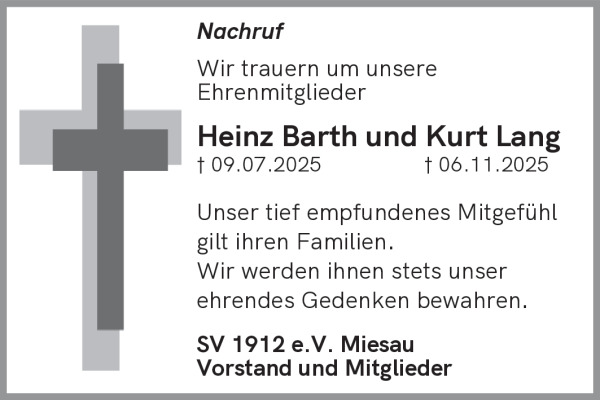 Verein: Nachruf für Ehrenmitglieder Heinz Barth und Kurt Lang