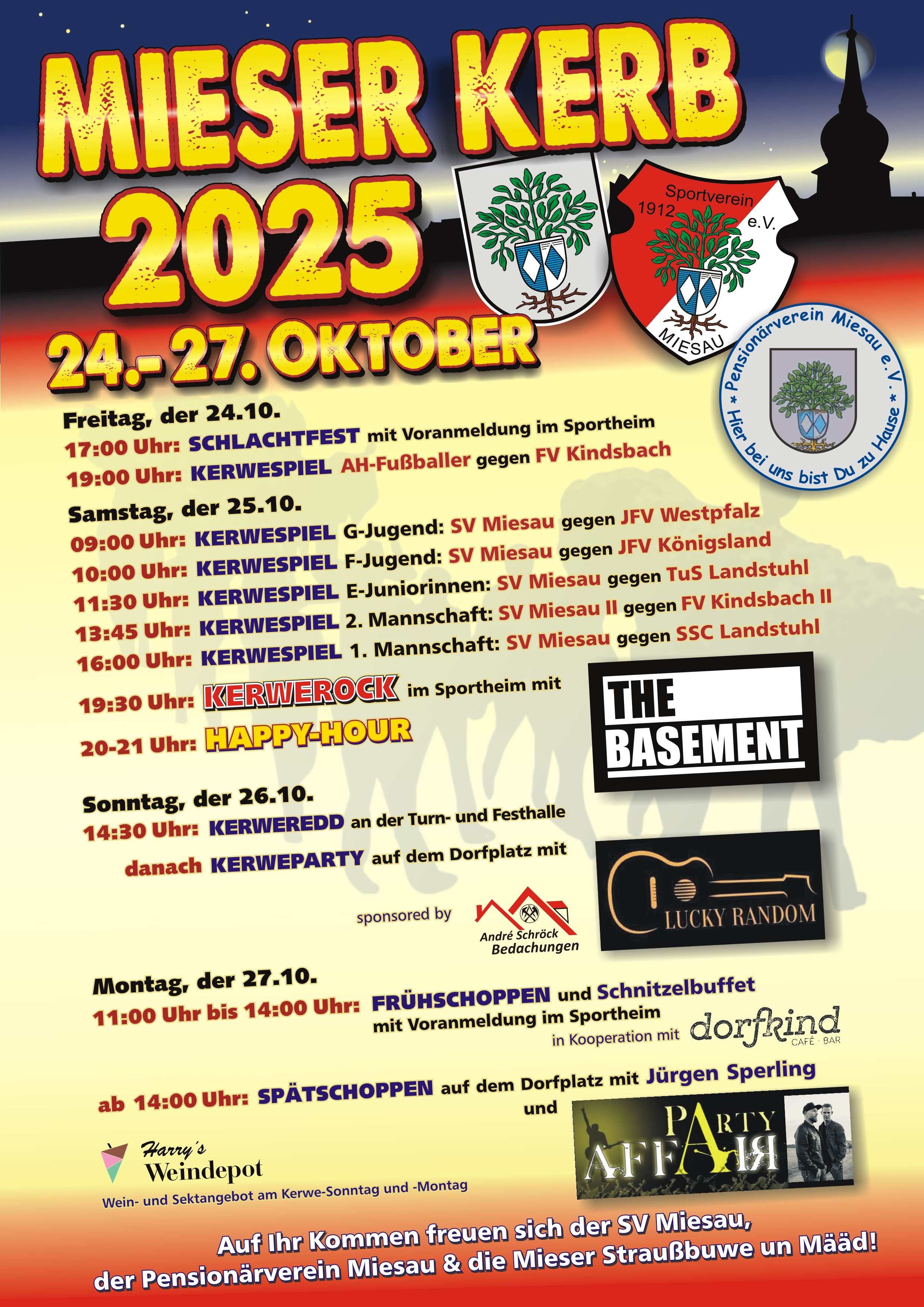 In einem von Schiedsrichter H. Rummler gut geleiteten Kerwespiel in Spesbach gelang der AH ein Sieg des Willens. Beide Teams spielten mit offenem Visier und so startete der Torreigen bereits in der 14. Minute durch die Gäste. Kurz vor der Pause belohnte sich die SG dann mit dem Ausgleichstreffer durch A. Fromkorth. In der 38. Minute erhöhte dann A. Clemens per Strafstoßtreffer auf 2:1, dem die Gäste ebenfalls per Elfmeter das 2:2 in der 47. Minute folgen ließen. K.-R. Peters war es vorbehalten in der 53. Minute auf 3:2 zu stellen, dem Krottelbach kurz darauf den abermaligen Ausgleichstreffer folgen ließ. Die SG wollte den Kerwesieg aber unbedingt und so traf F. Besserer kurz vor dem Abpfiff in der 68. Minute zum 4:3 Endergebnis. Danach wurde der Erfolg noch gut gefeiert.