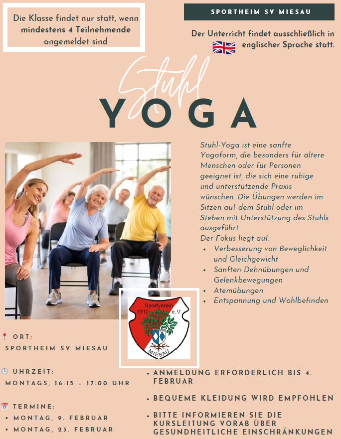 Turnen: Neue Übungsgruppe Stuhl-Yoga startet am 9.2.26 !